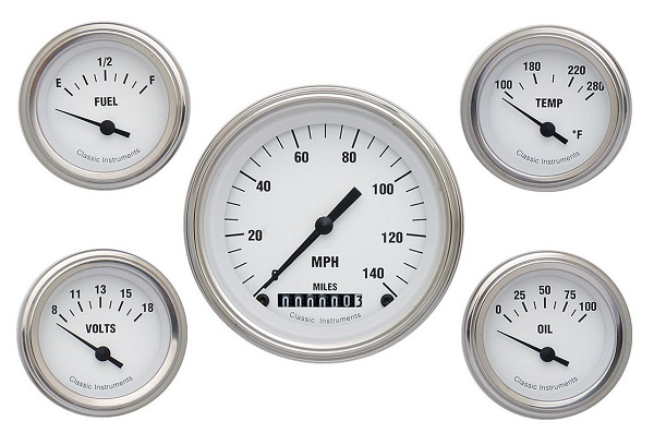 CLASSIC WHITE HOT 5 GAUGE SET 3-3/8 KM/H SPEEDO CURVED GLASS