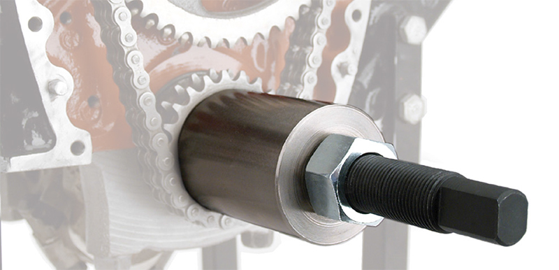 The only way to ensure proper installation of the lower timing gear without fear of damage is to press it on with equal distribution of force over the entire surface of the gear. By using the COMP Cams Crank Gear Installation Tool used in conjunction with the COMP Part #4920 Harmonic Balancer Installer, equal and constant pressure is applied, and the chance of gear damage is minimised