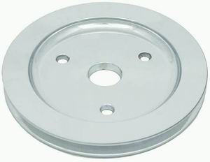 Polished aluminium S/B Chevy V8 single groove crankshaft pulley, short water pump, lower.