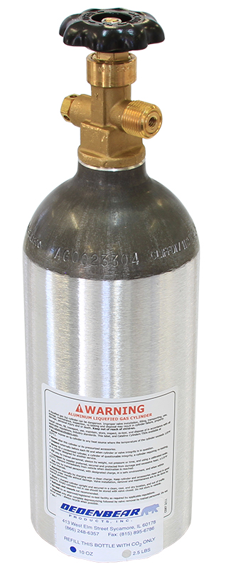 DEDENBEAR 2.5lb. CO-2 BOTTLE & VALVE ONLY. 4.375″ = 111MM