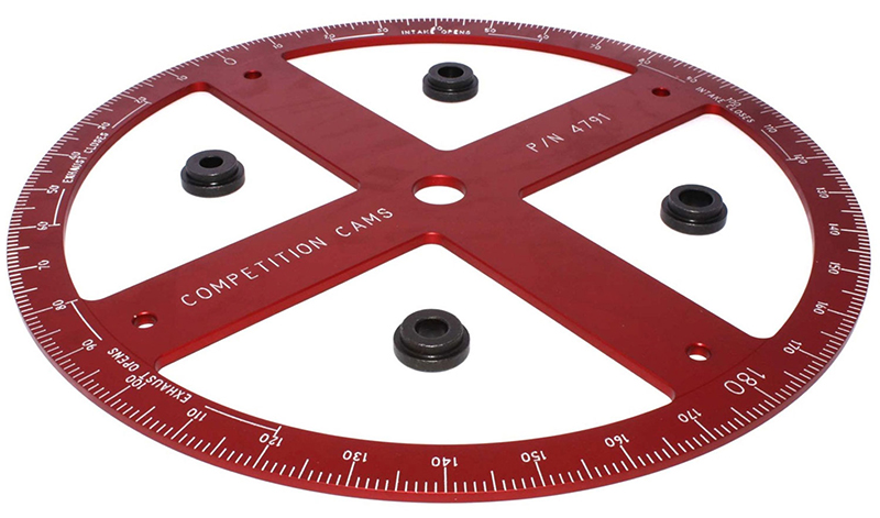This giant 16″ Dia Pro Degree Wheel is machined from a 1/4″ thick aluminium plate, red anodised and precision engraved. The open design allows degree bushing changes while the wheel is still on the engine. This extreme precision tool is found in most NASCAR shops and is must for any professional racer or engine builder.