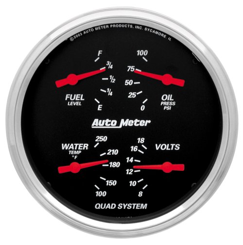 DESIGNER BLACK 5″ QUAD GAUGE FUEL E/F, WATER OIL PRESS VOLT