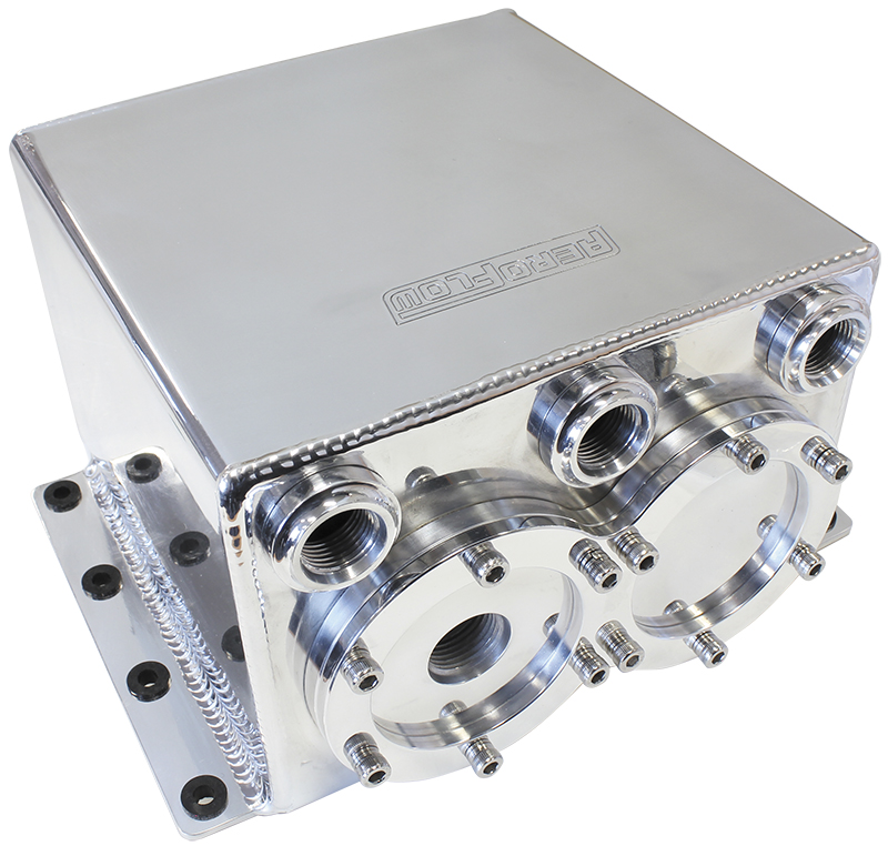 The tank is available in either Polished or Black anodised finishes. Black anodised is recommended for Ethanol or Methanol fuel systems. A block off plate is also included so you can run asingle pump rather than the dual setup.