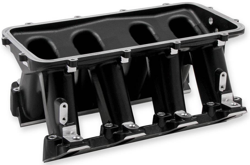 The Holley GM LS1/LS2/LS6 Modular Hi-Ram Intake Manifoldis introduced as a cost effective alternative to fabricated sheet-metal for high-performance applications where induction system height is not limited. Coupling this Hi-Ram intake with the high flowing LS1/LS2/LS6 style cylinder heads has outstandingpotential for N/A and forced induction applications at a budget-minded cost. Aggressive, bold, race-bred styling will make bad intentions clear for drag race, muscle car, marine, off-road, sandrails, pulling trucks, track, street-rod applications and more!