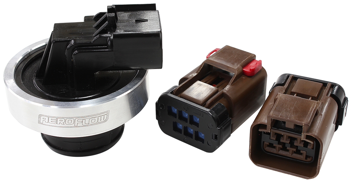 The Aeroflow Performance weld-in electrical bulkhead 6 pin connector is a quality component to wire your fuel pump in your fuel cell projectin a safe way to ensure no leaks or fumes escape. The connector kit is rated up to 30amp per pin to supply enoughjuice to power all aftermarketfuel pumps. The terminals are intended for use with 14-10AWGwires. The terminals are easily installed or de-pinned with ease using basic hand tools and each connector is separate making installation abreeze. This kit includes a weld-in aluminium bung for thebulkhead connector, a Viton O-ring to seal the bulkhead to the bung, and a snap-ring to secure the bulkhead safely in place. Internal and external connectors are included, alongwith 12 crimp terminals. Max diameter of bung is 2.4″ and Minimum Panel hole is 1.9″.