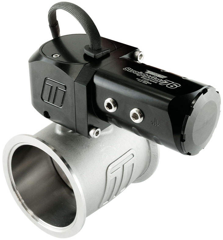 The StraightGate76 from Turbosmart is the world’s highest flowing external wastegate! The StraightGate76 is a zero-offset butterfly style wastegate which allows enormous flow and almost linear control with unparalleled boost control throughout the entire operating range. Turbosmart’s eSG76 Electronic StraightGate is a Patent Pending and based on the success of the Multiple Award Winning, World First eSG50 Electronically Actuated Butterfly Style External Wastegate. No reference hoses, no springs and no diaphragms means full electronic control via a servo motor and Turbosmart’s zero-backdrive gearbox which results in lower current demands as well as operation stability against huge drive pressures. The eSG76 includes onboard sensors covering actuator temperature as well as valve position in both analog and digital. The Electronic actuation results in the widest possible tuning window from zero boost (if manifold priorityallows for it) to all available boost.