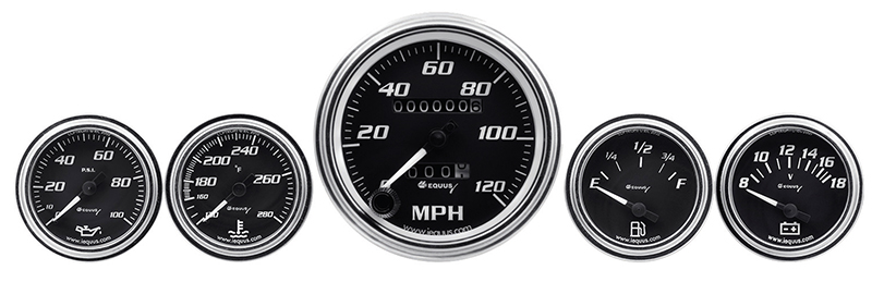 EQUUS 5-PIECE GAUGE KIT BLACK FACE, CHROME BEZEL