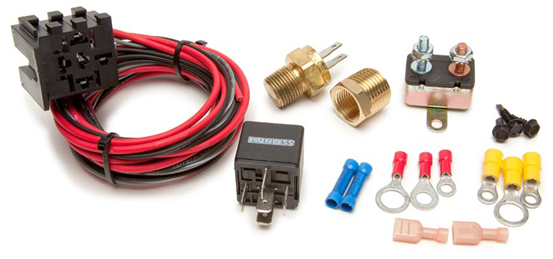 This Fan-Thom II kit comes with a threaded thermostat that screws into the engine block or intake manifold for a professional looking installation. This is inexpensive protection for an electric fan and a vehicle’s wire harness. Provides constant voltage, protects from voltage and amperage spikes and prevents the fan from back feeding voltage through the vehicle’s wire harness.