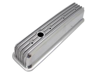 Polished aluminium S/B Chevy 1987-up “finned” valve cover – short with hole.