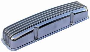 Polished aluminium S/B Chevy 1957-86 “finned” valve cover – tall with hole.