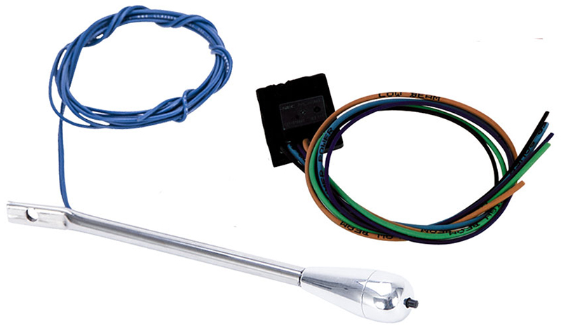 Turn signal lever can be ordered with a discreet micro switch. A relay master unit, turn signal arm, and micro dimmer switch is included for high beam/low beam operation.