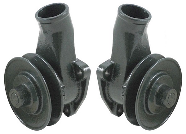 Not rebuilt, but all new inside and out. These pumps mount and work for replacing original 1932 V8 pumps (which have an approximately 2″ longer water-hose neck). Revive your cooling system and prolong engine life by installing fresh pumps. R.H. and L.H. are the same. Better Impeller Design Ceramic Seals Smoother Inner Surfaces for Better Coolant Flow Sealed Bearings (no need to grease) Gaskets included. Pair.