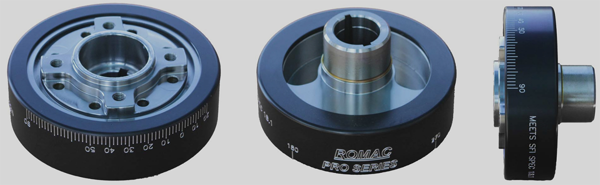 All Romac Harmonic Balancers are SFI 18.1 spec approved. These are offered in four styles. All 360 degreed and fully encapsulated outer rings via a shoulder at the rear and a serviceable circlip mounted at the front of the outer ring. All Romac Balancers are Individually Consecutively Marked, fully serviceable and need no special bonding with the elastomer. Balancers can be ordered with undersize bores to suit Scat and Eagle crank snouts; simply indicate this by adding the undersize to the P/N when ordering. To be sure of the bore size you need you should measure this prior to purchasing. A list is provided in our catalogue for standard factory bore diameters.