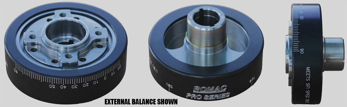 All Romac Harmonic Balancers are SFI 18.1 spec approved. These are offered in four styles. All 360 degreed and fully encapsulated outer rings via a shoulder at the rear and a serviceable circlip mounted at the front of the outer ring. All Romac Balancers are Individually Consecutively Marked, fully serviceable and need no special bonding with the elastomer. Balancers can be ordered with undersize bores to suit Scat and Eagle crank snouts; simply indicate this by adding the undersize to the P/N when ordering. To be sure of the bore size you need you should measure this prior to purchasing. A list is provided in our catalogue for standard factory bore diameters.