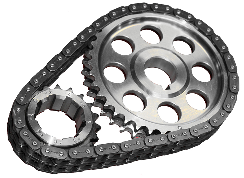 All JP Performance Timing Chain Sets are supplied with induction hardened and multiple keyway crank sprockets (which have the keyways index marked for easier timing) and balanced camshaft sprockets and a true roller timing chain. Also all sets for engines without factory fitted thrust plates (i.e. Chev V8’s and Chrysler big block V8’s) are machined with a reverse oiler groove.