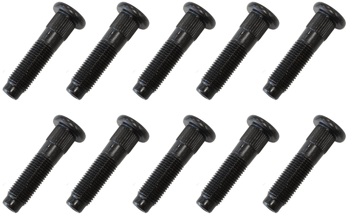 Ford 9 inch rear end centre carrier studs are manufactured from high strength steel with a thread size of 3/8″-24 and overall length of 1.75″ ( 44.45mm ). A knurl size of 0.395″ ( 10mm ) studs. This set includes 10 studs only, no nuts/washers are included.