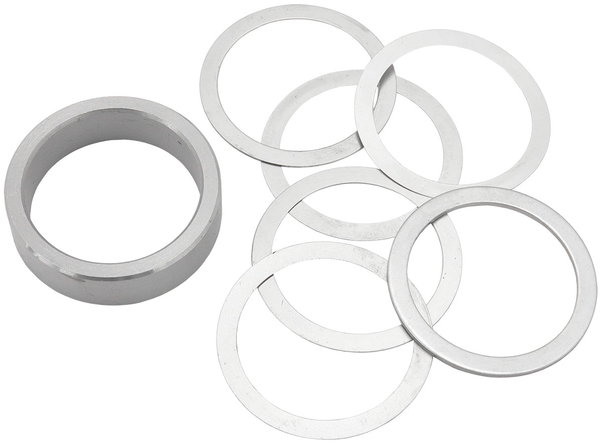 This solid pinion spacer kit is designed to install on the pinion and preloads the pinion bearings. This is an upgrade from the crush sleeve which is prone to failure on your performance differential.Eliminate the worry of altering bearing preload when changing yokes while also increasing the life of your gear set by making the assembly more stable under extreme loads. Includes four shims for setting and maintaining optimal bearing tolerance.