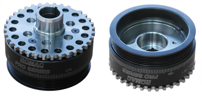 Steel Inner Hub / Alloy Outer Ring, for very Hi Performance Street, Marine or Race engines requiring the added insurance of a Steel Inner Hub for strength where dry sump pumps etc. may be installed. Romac recommend this style of balancer over all other balancers we produce due to its flexibility and endurance characteristics. Weight savings of approximately 1/3 less can be achieved with this style of balancer over our steel units and factory units. Available in External or Neutral balance. RPM range 10,000. Weight from 1.8 to 3.5kg’s