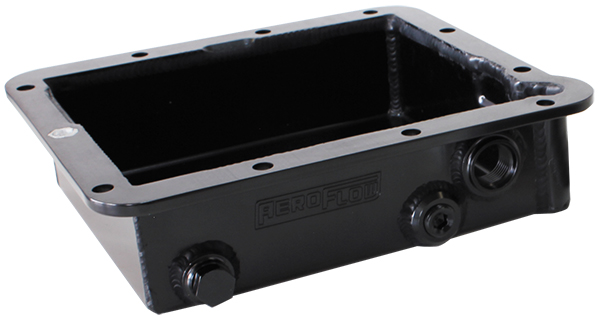 Aeroflow transmission pans use a one piece billet rail for precise fitment and strength. The deep fabricated aluminium design allows you to carry more oil to help reduce unwanted gearbox temperatures. Aeroflow pans come with Dual fittings, 1 x -6 ORB and 1 x 3/8″ NPT for optional temperature gauge. All pans come with serrated flange bolts.