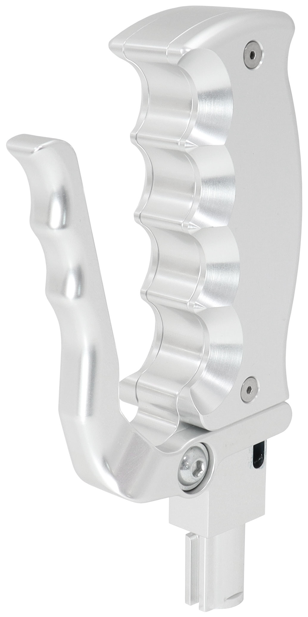 The Bang Shift Attack OEM replacement billet shifter handles are perfect for those that want the race orientated look whilestill retaining your factory OEM automatic shifter assembly. This quick and easy to install handle will enhanceany interior of the modern-daycar without the hassle of a new shifter assembly. The pistol grip handle is a handy two-piece bolt together designthat allows interchangeable billet side plates to be purchased separately. Detent activation is controlled by a trigger lever mechanism that is pulled in towards the gear shifter handle to activate andcontrol the lockout. Availableto fit a variety of OEM automatic transmission shifterhandles with choice of either black or silver colour options.