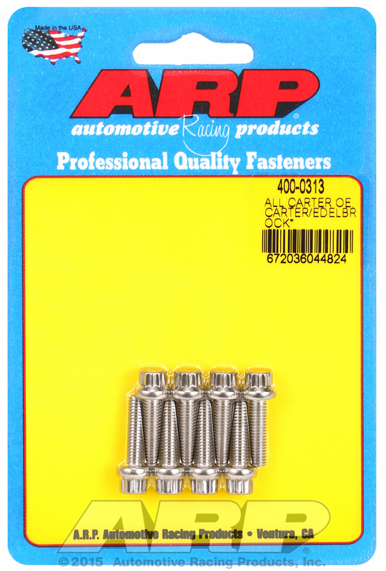 The smart way to attach a float bowl is with ARP’s special new bolts. They’re made from ARP Stainless and are virtually impervious to corrosion. A polished finish makes them an enhancement to any carb. They are 5/16″ wrenching and nominally rated at 180,000 psi. Available for both single and dual metering block Holley and Carter AFB applications.