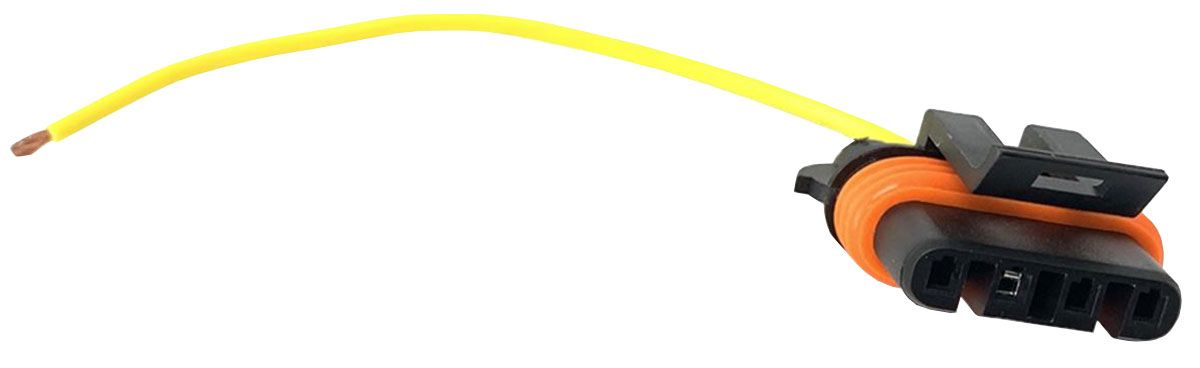 Standard GM 4pin plug with single yellow wire that connects to a 12v key on/off switch source from the application. Can be hard wired into an OEM harness for stealth look or sourced directly from the vehicles fuse box under the hood. All of our custom plugs are crimped, soldered and epoxied for maximum durability and safe from weather elements. This is the same harness that we include for free on many of our older GM fitments, custom/universal and RVC Bypassed alternators.