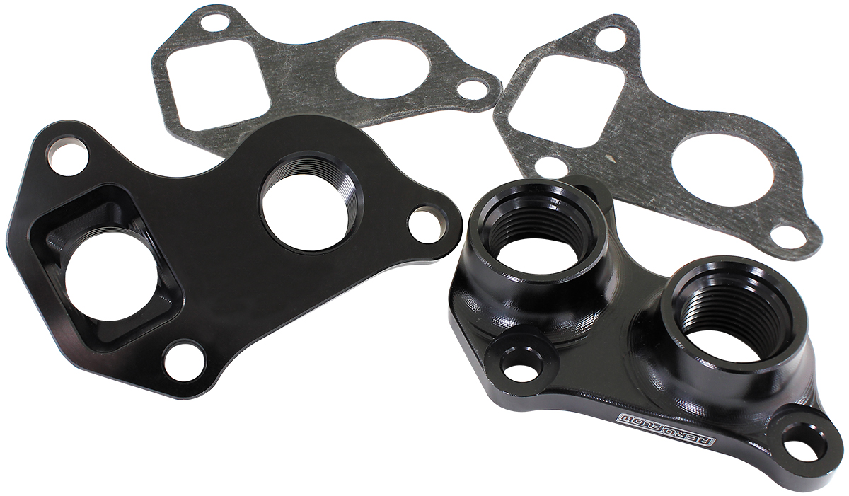 The Aeroflow Performance GM LS water pump adapter plates are designed for cooling systems that employ a remote or radiator mounted water pump. These adapters are the cleanest and simplest way to connect the coolant lines to the engine. These plates are designed to help you connect hoses to your engine block at the spots where the water pump usually bolts on. Featuring 4 x -10ORB ports and manufactured from billet aluminium.