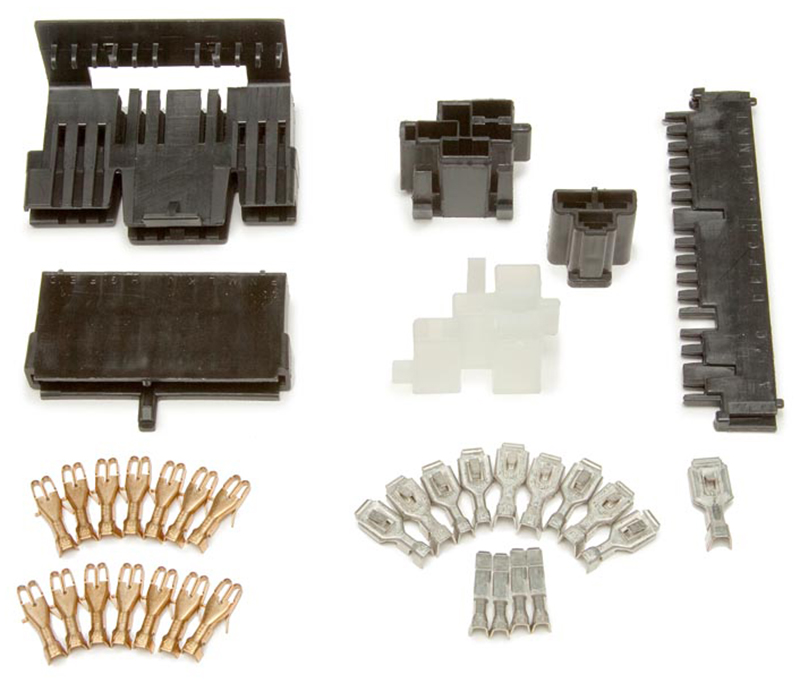 All the plugs and terminals for your early GM keyed steering column in one kit. Contains two ignition switch connectors, two turn signal connectors and one dimmer switch connector and terminals for each.
