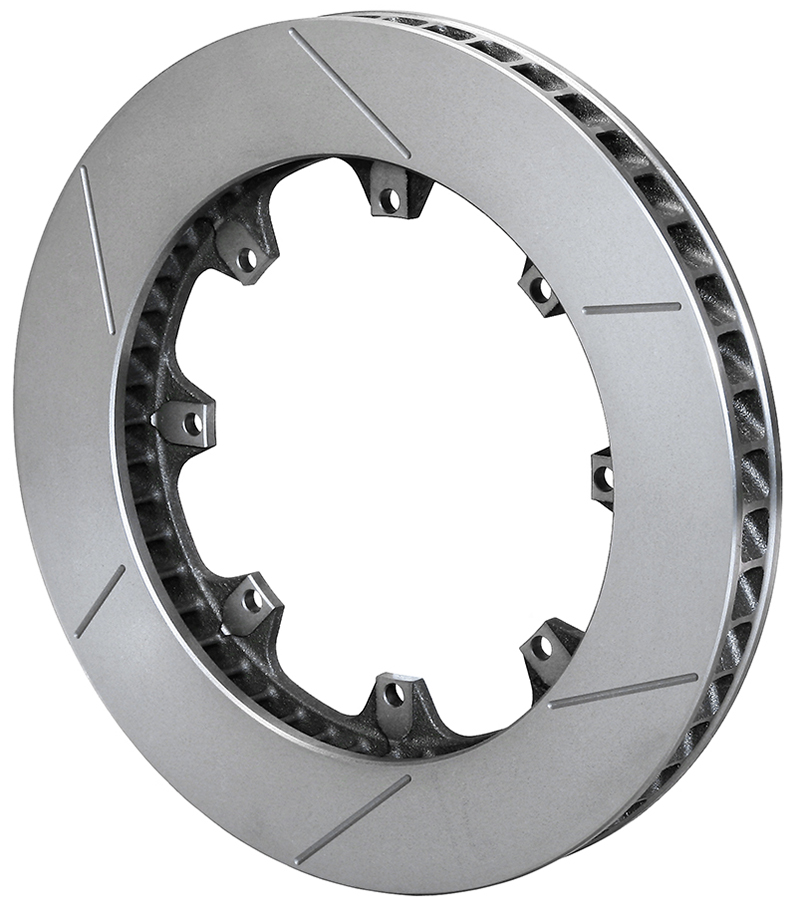Wilwood’sGT 48 Curved Vane Spec-37 rotors are manufactured from aproprietary iron alloy developed to withstand extremetemperatures with the highest possible degree of resistance against distortion, warping, cracking, and wear. The formulation for this alloy is a derivative of technology andmaterials that were significant in the developmentof the extreme duty military spec rotors that are manufactured by Wilwood. Combined with our proven GT Series asymmetrical face slot pattern and individual dynamicbalancing, you are assured thesmoothest, vibration free performance at any speed. These rotors provide the highest cooling capacity and longest service life for extreme braking short tracks and road course competition.