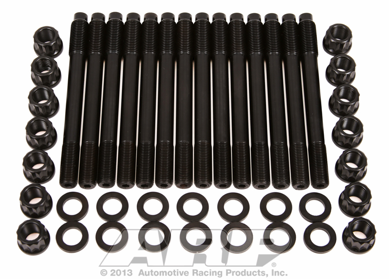 It is for good reason that virtually every top professional engine builder relies on ARP Pro Series head studs for their all-out competition powerplants. Simply stated, there’s not a better stud setup on the market today. For openers, ARP only uses premium grade 8740 alloy and a proprietary ARP2000 alloy that are rated far superior to “aircraft” quality alloy steels. Secondly, each stud is placed vertically into special racks and precisely heat-treated to 190,000 psi for the 8740 material and 220,000 psi for the ARP2000 material. This procedure ensures complete heat penetration and the results are far superior to those lesser quality studs from other manufacturers who just dump pieces in a basket and hope for the best. Following heat-treat, each stud is centerless ground to make it as close to perfectly concentric as possible. This procedure involves about ten very slight cuts and results in an exceptionally straight part. It’s important to note that lesser quality studs are not even centerless ground – the material is thread rolled in bar stock form (mostly before heat-treat, when the material is easier to machine). Because ARP studs are manufactured to such exacting tolerances, you will note that gaskets and cylinder heads