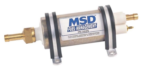 Multiport EFI systems require a stable fuel supply to maintain best performance throughout the engine’s rpm range. This high pressure and high flow Fuel Pump features a roller vane pump mechanism which is extremely resistant to clogging and jamming. The pump mounts in-line (out of the fuel tank) with two supplied cushioned clamps for a quick and sturdy installation. The nipple inlet is 3/8″ with a 5/16″ outlet. The wire terminals feature brass studs for secure connections. Made in the USA, the pump is ideal for use as a “booster” for nitrous oxide applications, or as a stand alone pump for Multiport EFI systems on engines up to approximately 500 HP. Capable of 43 gph at 40 psi.