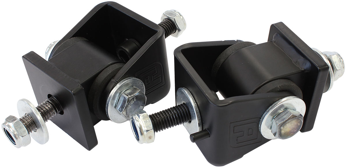Aeroflow Performance engine mounts are a great upgrade for your dailydriver, high performance or competition car. Be sure the engine sits in the right placeevery time with these engine mounts that are designed as a direct bolt up for conversion cars and also OEM replacement with no extra adapters required. Due to excessive movement the factory OE enginemounts are prone to failure orjust everyday wear and tear. The black polyurethane bushes and high-quality steel mounts isolates the engine from the chassis, resulting in vibration suppression and allowing the power to get to the ground where it is needed.The two-piece bolt together design of these engine mounts allow the end user to split the two halves for ease of removal or installation of theengine to the chassis.