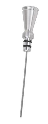 Flexible Engine Dipstick designed with billet aluminum handle to coordinate with Lokar’s Flexible Transmission Dipstick. Slim design allows mounting between header tubes. Designed for use with factory or block hugger headers. Applications available for GM, Ford, and Chrysler. E-Z to Read flexible inner dipstick measuring cable for accurate measure of engine oil.