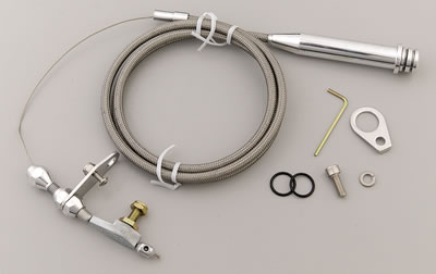 Lokar’s “U-Cut-to-Fit” Kickdown Cables are available in stainless steel braided housing, black stainless steel braided housing, or black housing. They are designed with a specially extruded liner for extended life of the cable. Kickdown features aluminum fittings with ferrule to eliminate frayed cable housing ends. Kickdowns are adaptable for all types of manifolds including tunnel ram, blower manifolds, and Weber induction systems. Mount our kickdown with our Stainless Steel Carburetor Bracket and Return Springs (sold separately). Polished kickdown cables will include polished aluminum fittings. Black Hi-Tech stainless cables will include black anodized aluminum fittings.