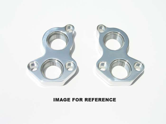 For systems that employ a remote or radiator mounted water pump, these adapters arethe cleanest and best way to connect the lines to the engine. These plates are designed to help you connect AN style hoses to your engine block at the spots where the water pump usually bolts on. Each features a female AN o-ring type thread connection.