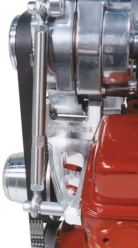Alternator bracket fits serpentine and V-belt applications. This design will adjust to compensate for V-belt water pump flange misalignment. Comes complete with tensioning rod and grade 8 mounting hardware. Will Work with Vortech Heads. (Requires heads with accessory holes and alternator with 6 & 12 o’clock mounting position)
