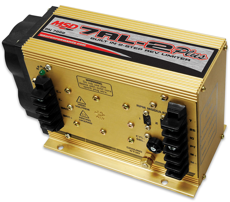You’ll recognise the 7AL-2 Plus Ignition Control, as its predecessor is the most popular ignition control used in drag racing. The “Plus” model updates the original 7AL-2 with improved internal components plus our engineers added a 2-Step Rev Control and a useful diagnostic LED. Racers will be happy to see that the updated components up the voltage output and spark energy! Over 50% more spark energy in fact! Visually, you’ll notice the two terminal strips that allow for easier wiring in your race car. The LED over the power connections will come in handy for troubleshooting as it flashes only when the coil fires. That way you know that the coil, the trigger source and ignitio n are all y. The mounting pattern is the same as the 7AL-2 and is supplied with vibration mounts and a few rpm modules.