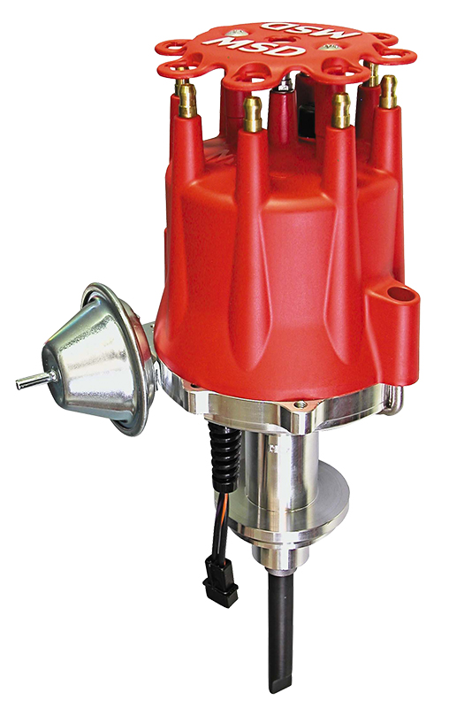 Nostalgic engines are hotter than ever with the early HEMI models topping the cool factor in classic hot rods. For anyone with a 392 HEMI, they’re going to be excited to hear about MSD’s new Pro-Billet Distributor. The Pro-Billet 392 Distributor, PN 83891, is based on a CNC-machined billetaluminum housing for incredible strength and precision tolerances. For stability, the distributor shaft is guided by a sealed ball bearing while accurate trigger signals to fire the MSD Ignition Control. For tuning, the HEMI distributor features MSD’s easy-to-adjust mechanical advance and is supplied with different springs and stop bushings. This allows you to custom tailor a timing curve to matchyour application. There is also a vacuum advance canisterthat will help with economy during cruises and throttle transitions. The distributor is supplied with MSD’s heavy duty race rotor, distributor cap and spark plug wire retainer. An MSD Ignition Control such as a 6AL is required and will plug directly into the magnetic pickup of the distributor.