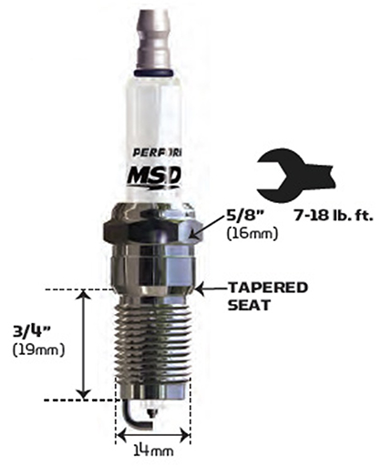 MSD SPARK PLUG, 2IR5L (EACH) 14mm x 3/4, 5/8 HEX, TAPERED