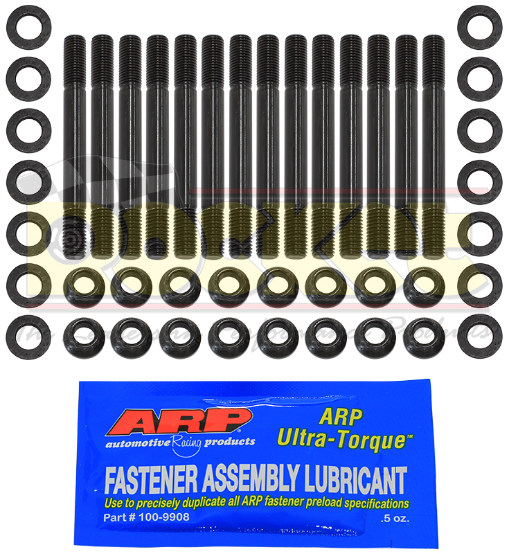 There are many important reasons to use ARP main stud kits, including the elimination of main cap walk and fretting, as well as protecting the threads in your engine block. All kits come complete with hardened parallel-ground washers and high quality nuts. Some applications have provisions for mounting windage trays and have specially designed standoff studs with serrated lock nuts to position the windage tray and lock it securely in place. The studs are manufactured from 8740 chrome moly steel, heat-treated in-house to 190,000 psi tensile strength, and precision J-form threads rolled after heat-treat to create a fastener that has threads 2000% stronger than others.