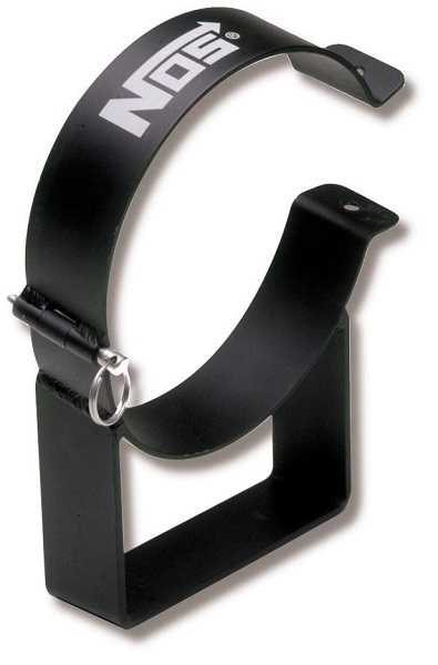 NOS brackets are designed to securely hold your nitrous bottle at the proper angle for maximum flow through the siphon tube. Standard brackets available made of steel with black vinyl coating, or Nylon. Quick-release aluminium models also available.