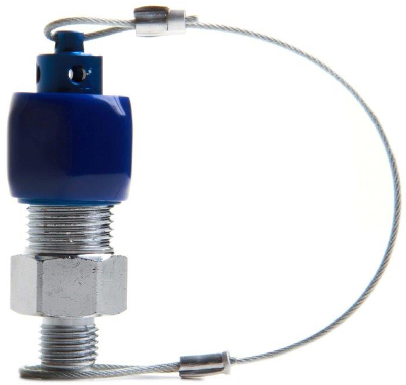 Any ANDRA sanctioned track will require these blow-off caps in all classes when you run with nitrous oxide. These are safety devices that fit on the bottle. If your nitrous system creates too much pressure, one of these caps will allow it to bleed off through the vent tube, which exits outside the vehicle.