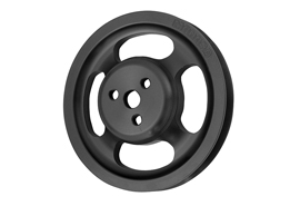 Offset 7/8″, 5″ diameter pulley uses stock (3-bolt) mounting pattern with 1.16″ bolt circle