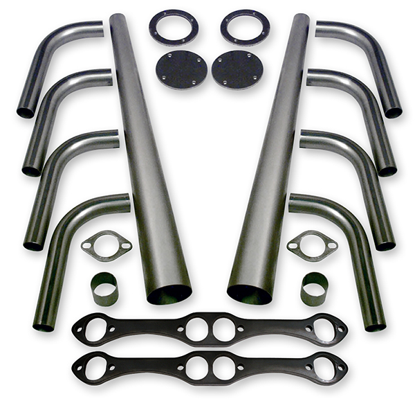 Our weld-up header kits work great for street rodders and racers who need to build custom headers when a specific fit header or style is not available for their car. Lakester style header kits featuring 16 gauge mild steel tubing and specially designed tapered collector cones. Each kit includes all the necessary tubes, flanges, gaskets and hardware.
