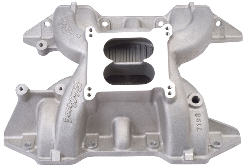 Performer RPM are dual-plane, high-rise intakes with 180° firing order to produce incredible top-end horsepower while retaining good throttle response. Their larger plenums and runners match the free-flowing exhaust, high-lift cams and other modifications of a high output engine. They are intended for high-performance street or competition engines that run up to 6500 rpm. They are not for emissions equipped engines. Edelbrock’s Performer RPM gives you the ultimate in street high-performance.