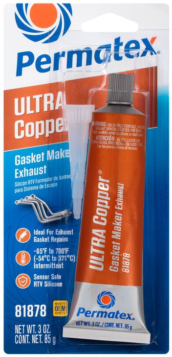 Permatex Ultra Copper is a high temperature RTV gasket maker, resisting temperatures up to 700°F (371°C). Ultra Copper is tested to exceed OEM specifications and is ideal for high temperature applications such as turbocharger applications and exhaust systems. For maximum performance, with the highest temperature resistance today up to 750°F (399°C) check out Permatex’s OptimumRed.