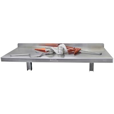 A full size aluminium fold down table that quickly folds and out of the way when you’re through working. Folded it protrudes only 4-1/2″ (114mm) from the wall, Opened it measures 44″ x 18″ (1118 x 457mm) . Solid, heavy duty 1/8″ aluminium fold down work surface. Mounts on 32″ centres.