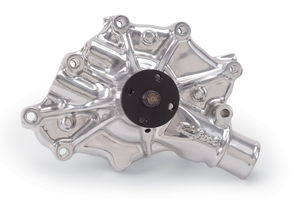 Edelbrock Victor Series water pumps provide maximum cooling for the street and the race track. They’re ideal to prevent overheating in street rods and street machines, as well as in tow rigs and motor homes. Using state-of-the art racing technology, Edelbrock has designed these “super cooling” water pumps to provide maximum flow, maximum pressure and equal distribution to both sides of the engine block within 1%. Available for most popular applications, these high-performance pumps flow in only one direction for optimum efficiency. The casting’s computer-designed internal passages and precision powdered metal impeller produce the maximum flow rate possible. Standard and reverse rotation pumps are available for most Chevrolets, Fords, and Chryslers.