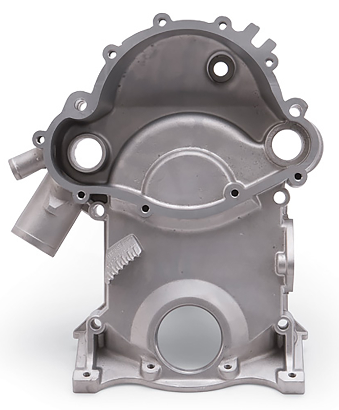 This die-cast aluminium timing covers for Pontiac comes with pan seal, gaskets and timing marker. Designed tofit 1969-79 350-455 c.i.d. Pontiac engines. Compatible with stock or Edelbrock VictorSeries aluminum water pump ED8856.