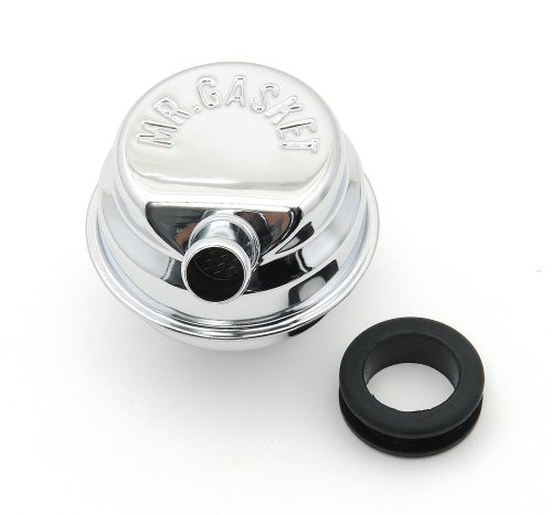 This chrome plated breather, embossed with Mr. Gasket on its top, is perfect for race car vacuum balance systems as well as OEM use. It has a 1″ O.D. neck and 5/8″ O.D. breather tube with an integral metal baffle/foam element combination. Will fit any cover with 1.22″ dia. hole